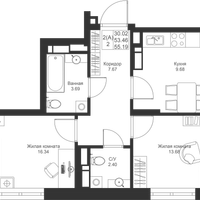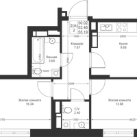 2-к. квартира, 55 м²