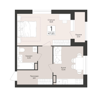 1-к. квартира, 47 м²