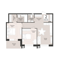 2-к. квартира, 68 м²