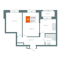 2-к. квартира, 54 м²