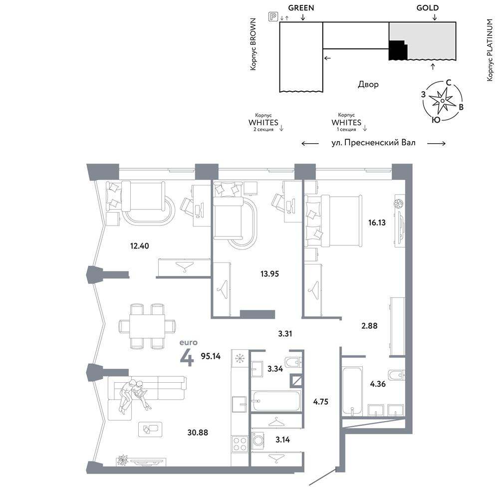 4-к. квартира, 95 м²