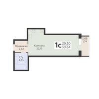 1-к. квартира, 30 м²
