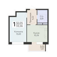 1-к. квартира, 33 м²