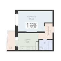 1-к. квартира, 38 м²