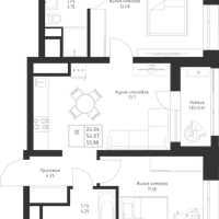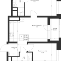 Студия, 55 м²