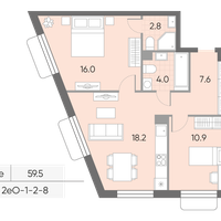 2-к. квартира, 59 м²