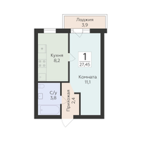 1-к. квартира, 27 м²
