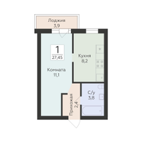1-к. квартира, 27 м²