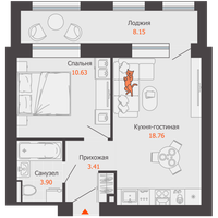 2-к. квартира, 41 м²