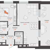 2-к. квартира, 68 м²