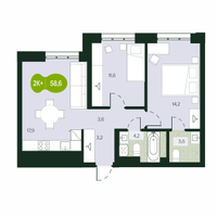 3-к. квартира, 58 м²