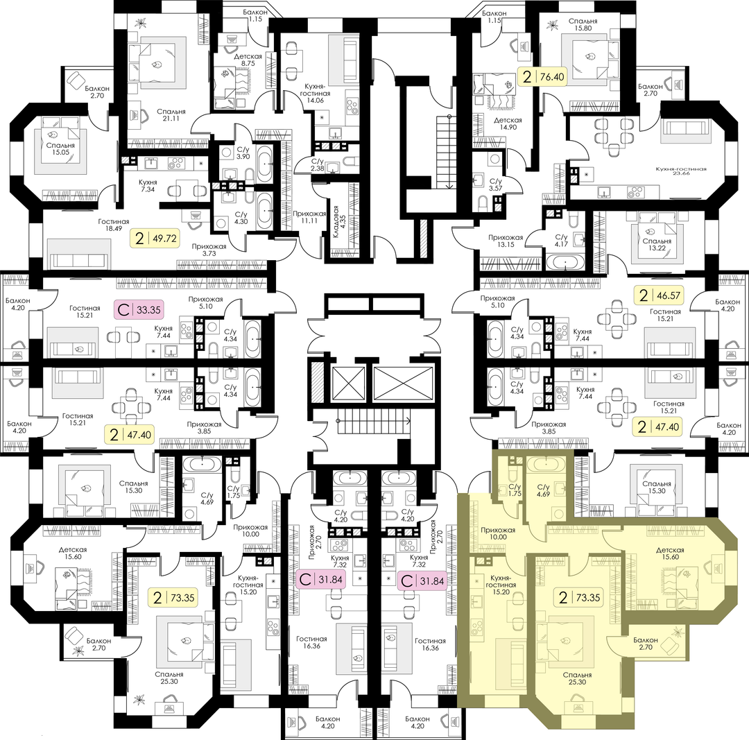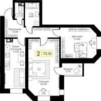 2-к. квартира, 73 м²