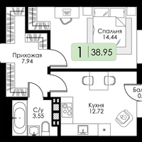 1-к. квартира, 38 м²