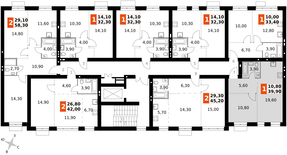 2-к. квартира, 39 м²