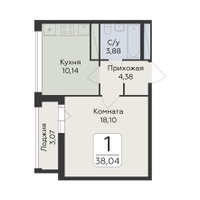 1-к. квартира, 38 м²