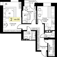 2-к. квартира, 66 м²