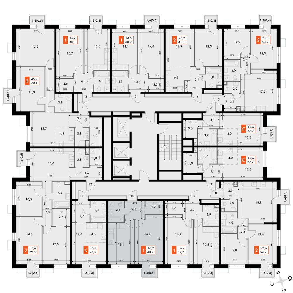 16 м²
