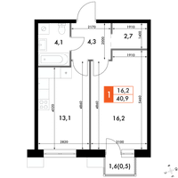 1-к. квартира, 40 м²