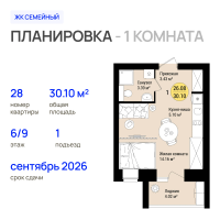 1-к. квартира, 30 м²