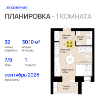 1-к. квартира, 30 м²