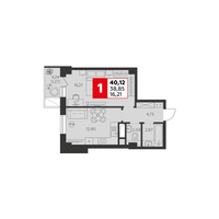 1-к. квартира, 40 м²