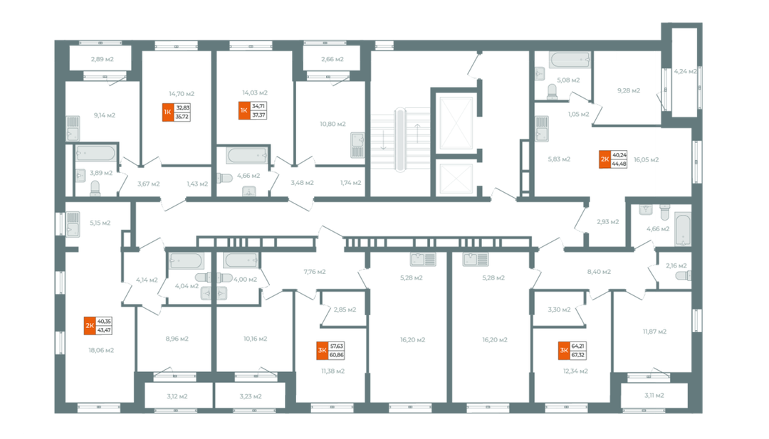 2-к. квартира, 42 м²
