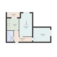 2-к. квартира, 53 м²