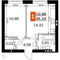 1-к. квартира, 35 м²