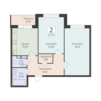 2-к. квартира, 63 м²