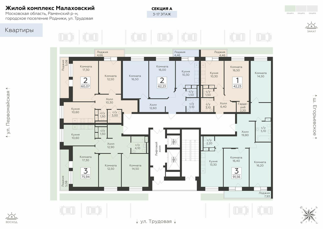 3-к. квартира, 91 м²