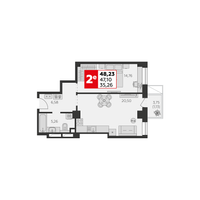 Студия, 48 м²