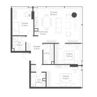 3-к. квартира, 100 м²