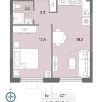 1-к. квартира, 37 м²