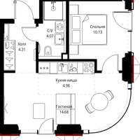 1-к. квартира, 38 м²