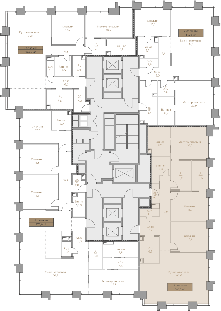 3-к. квартира, 143 м²