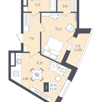 2-к. квартира, 53 м²