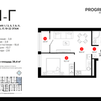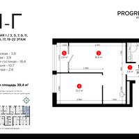 1-к. квартира, 39 м²