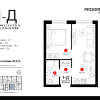 1-к. квартира, 33 м²