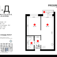 1-к. квартира, 33 м²