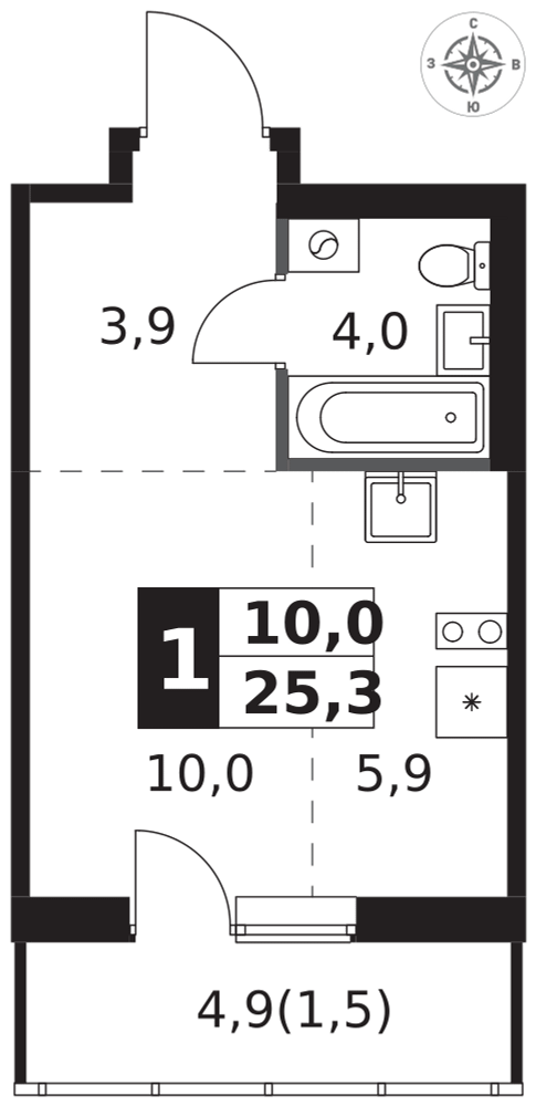Студия, 25 м²