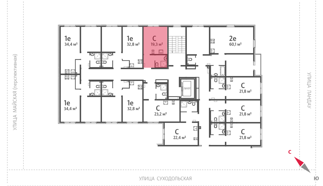 Студия, 19 м²