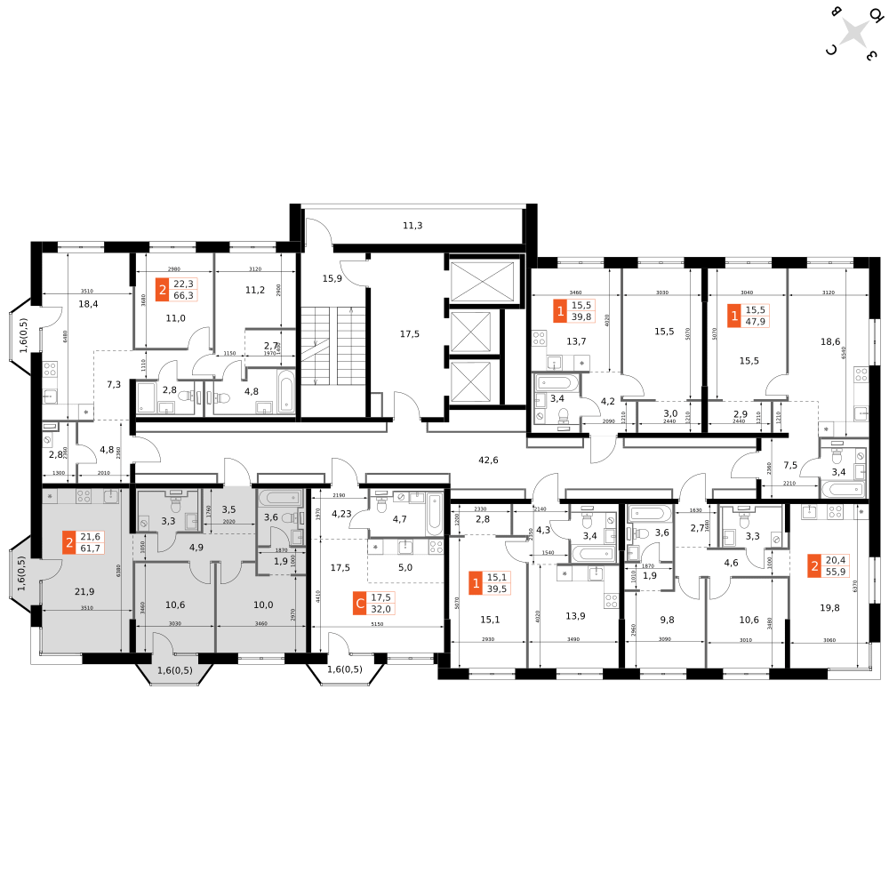 2-к. квартира, 61 м²