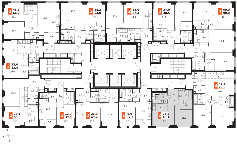 45 м²