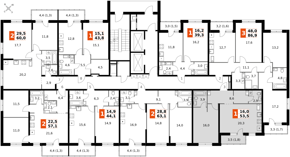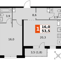 1-к. квартира, 53 м²