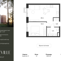 1-к. квартира, 38 м²