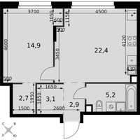 2-к. квартира, 51 м²