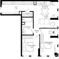 2-к. квартира, 64 м²