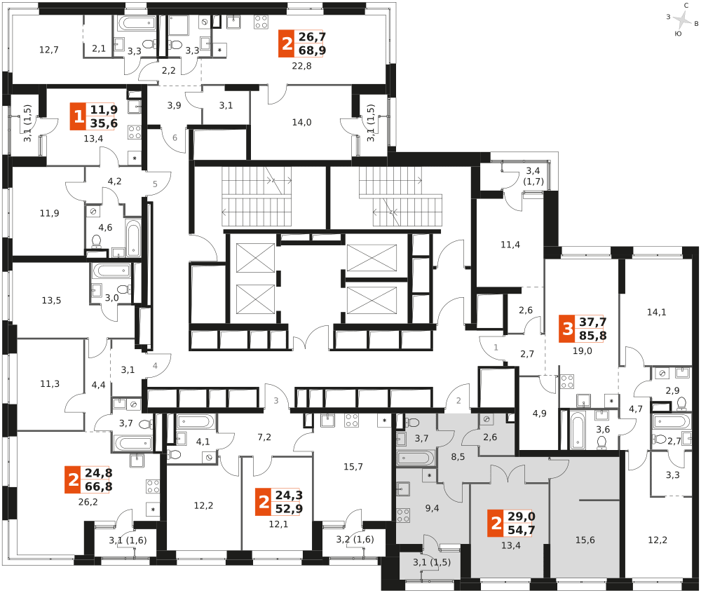 54 м²