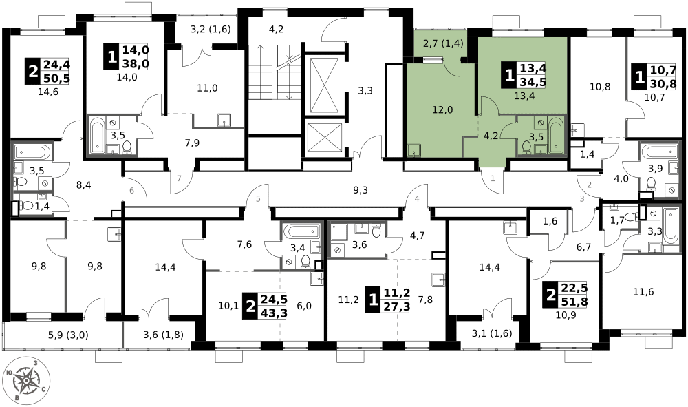 34 м²