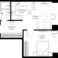1-к. квартира, 48 м²